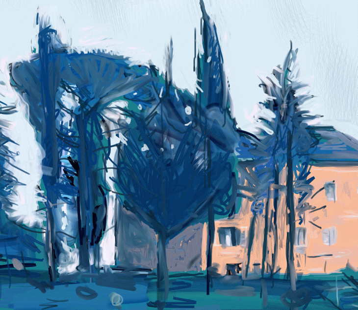 Eine neue Technik ist das Malen und Zeichnen per Hand direkt im Computer, um dann gedruckt zu werden auf Papier oder Leinwand. Die heutigen Geräte haben sich derart verbessert, dass man schnell und frei mit Farben und Linien arbeiten kann. Man malt nicht mehr auf wirklichem Papier oder wirklicher Leinwand, sondern auf virtuellem Papier im Computer. Es geht dabei nicht darum, andere Medien oder Materialien (z.B. Öl- oder Aquarellmalerei) vorzutäuschen, nachzumachen oder zu reproduzieren, sondern die Eigenheiten des neuen Mediums zu erforschen und anzuwenden. Dabei stößt man – wie bei allen Medien – auf Vor- und Nachteile. Vorteile sind z.B. die Schnelligkeit beim Farbenwechsel, bei der Korrigierbarkeit und bei der Trocknung (die es hier nicht gibt), was den intuitiv spontanen und direkten Umgang mit den Bildern fördert. Schnelligkeit hier im positiven Sinne, nicht als nervöses Herumprobieren.Das braucht Zeit, höchste Konzentration und macht viel Arbeit, und wie bei den traditionellen Kunstmedien hat es auch immer mit Können zu tun. Für bestimmte Dinge ist dieses Medium einfach perfekt. Vor allem kann man sehr fein mit transparenten Farbschichten arbeiten und bestimmte Farbtönungen erzeugen, die in anderen Techniken so nicht möglich sind. Man kann diese neue Technik mit traditioneller Druckgraphik vergleichen: Die bearbeitete Kupferplatte ist das virtuell erzeugte Bild im Computer, von dem dann, nach vielen Zustandsdrucken, Originaldrucke hergestellt werden in einer bestimmten Auflage. Es handelt sich also nicht um Reproduktionen. Für mich stellt dieses neue Medium eine wichtige Erweiterung dar, das unserer Zeit entspricht. Das bedeutet aber nicht, dass ich deshalb die traditionellen Medien wie Öl- oder Aquarellmalerei vernachlässigen werde. Im Gegenteil: Dinge, die man in den neuen Medien entwickelt hat, befruchten die Arbeit in der Ölmalerei und umgekehrt. Die kreativen Möglichkeiten erweitern sich dadurch in allen Medien und für mich ist es immer wieder überraschend, was dabei herauskommt. Absolut faszinierend. von Wolfgang Hock
