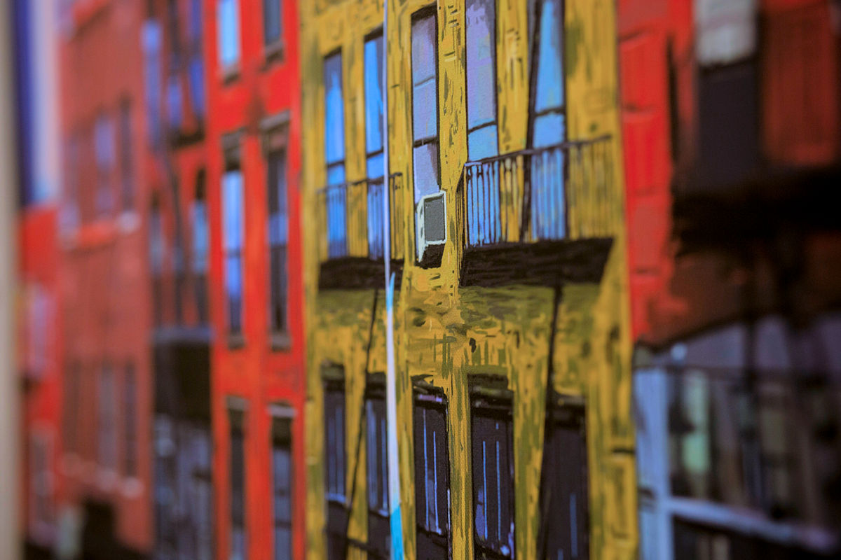 Wolfgang Hock vor seinem Bild "Bowery Home Supplies"
