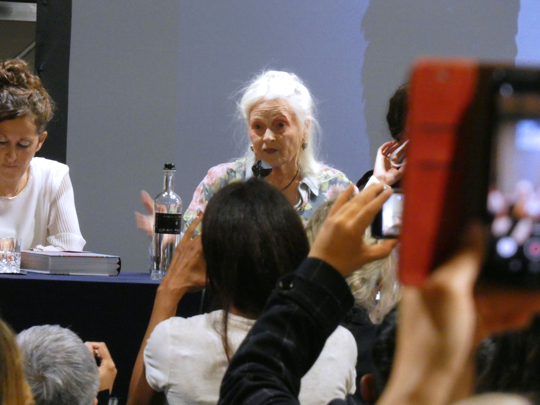 Bei der Round-Table-Diskussion am 27.10. mit Vivienne Westwood (Modemacherin), Michelangelo Pistoletto (Bildender Künstler) und Oliveiro Toscani (Fotograf) kam es zum Eklat: Die sehr plakativen Aussagen Westwoods, die von ihr wie von einer Prohetin des Untergangs der Welt mit zitternder Stimme vorgetragen wurden, waren z.T. unerträglich. Sie erklärte uns "Dummen" die Welt: "Wir haben keine Zukunft: Das finanzielle System basiert auf andauerndem Krieg, einem Handelskrieg, genau das ist es! ", "Wahre Economie basiert auf dem Wert von Land, das niemandem gehört", "Cooperation statt Wettbewerb", "die Welt steht vor einer Apokalypse", "S.O.S" würde unser Planet senden etc. Eine erratische Behauptung nach der anderen blieb einfach im luftleeren Raum stehen, ohne irgendeine Diskussion über deren Wahrheitsgehalt oder mögliche Lösungen solcher Zukunftsprobleme, alles abgelesen von einem Blatt Papier.